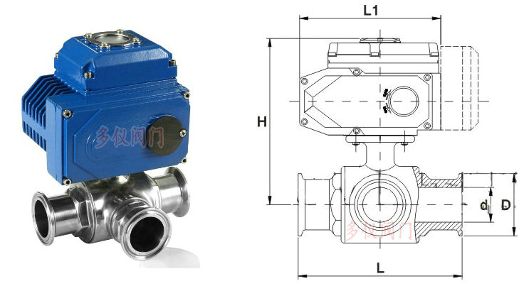 2,電動三通卡箍球閥安裝容易,操作簡單,可快速拆卸閥門,為日常清潔工作帶來許多方便;